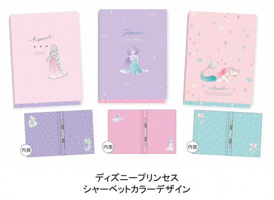 女子に圧倒的な人気を持つディズニープリンセス「ラプンツェル」「ジャスミン」「アリエル」を、シャーベットカラー&水彩アートのやさしい雰囲気で仕上げました。内表紙は花柄なので、ファイリングがより楽しくなります。