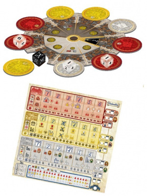 選んだダイスによって名声を高めたり、市民や資源を増やしたりして勝利点を競います。