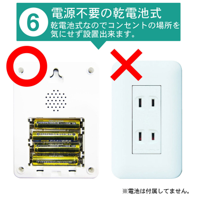 【 乾電池式 】 コンセントの有無を気にせずに設置できる。