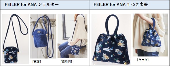 『FEILER for ANA』は、手触りの柔らかさと優れた吸水性、豊富なデザイン等により幅広い世代から支持され続けているブランドFEILERとANAが、旅行先や日常の様々なシーンで活躍する商品を共同開発したコラボレーションラインです。FEILERの豊富なラインナップの中から定番のハンカチやポーチ、バッグ、全5商品をANAオリジナルのデザインと配色で別注しました。デザインはFEILERの人気の高い絵柄「アナベラ」をもとに、薔薇や生地色をANAらしいブルーに変更、ANAオリジナルのモチーフとして飛行機柄も描いています。