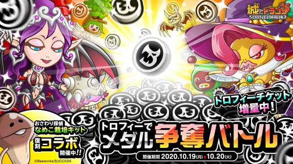株式会社アソビズム(本社:東京都千代田区、代表取締役:大手智之)は、App Store・Google Playにて好評配信中の『城とドラゴン』で「トロフィーでメダル争奪バトル」を2020年10月19日(月)より開催いたします。