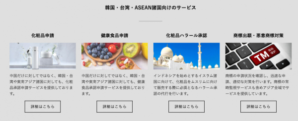 各国における費用とサービスに関しましては以下リンクのアジア諸国化粧品/食品申請項目をご覧ください。https://wwip.co.jp/