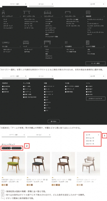 「ダイニングチェア」や「リビングテーブル」などの商品カテゴリーから候補を絞り込んで行くことができるため、あらかじめ探したいもの、目的が明確になっている方に適した検索方法です。