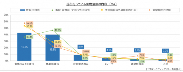 この程、TPCマーケティングリサーチ株式会社(本社=大阪市西区、代表取締役社長=川原喜治)は、医療機関を受診し薬物治療を行っている20代~40代の子宮内膜症患者507人を対象にWebアンケート調査を実施、その結果を発表した。