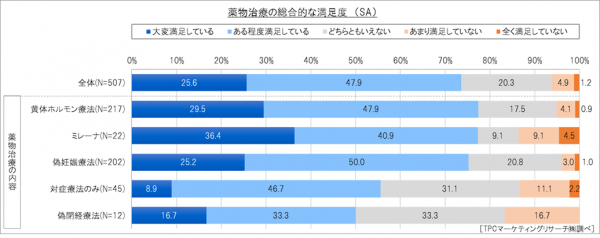 「対症療法のみ」「偽閉経療法」を行っている人は満足度が低い。