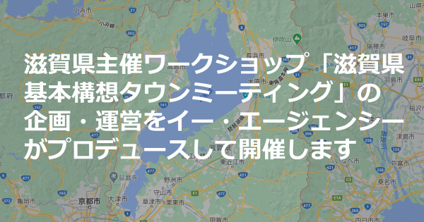 “おもてなしを科学する”株式会社イー・エージェンシー(本社:東京都千代田区、代表取締役:甲斐真樹)は、2020年12月18日(金)、19日(土)の2日間、滋賀県主催のワークショップ「2030年の未来を楽しむための私の取組宣言!滋賀県基本構想タウンミーティング」を開催します。