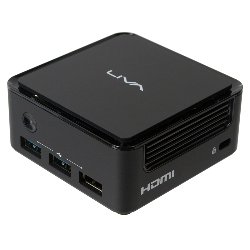 LIVA Q1Lは、Intel(R) Apollo Lakeを搭載した超小型の省電力デスクトップパソコンです。わずか74mm四方に収まる筐体で、今までPCが置けなかった場所にも設置可能です。4GBメインメモリ、64GB eMMCストレージ標準搭載、最大128GBに対応するmicroSDカードスロットを備えています。4K/60fpsの映像出力に対応するHDMI 2.0、高速無線LAN Wi-Fi 802.11ac、Bluetooth 4.1と、有線ギガビットLANポート2基を備え、モニター裏に固定できるVESAマウンタが付属します。一般的なデスクトップパソコンの用途に留まらず、組み込みやデジタルサイネージなど業務用途に最適なソリューションを提案します。