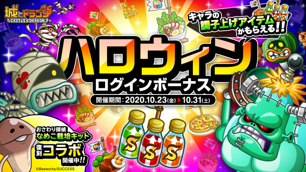 株式会社アソビズム(本社:東京都千代田区、代表取締役:大手智之)は、App Store・Google Playにて好評配信中の『城とドラゴン』で、2020年10月23日(金)より「ハロウィンログインボーナス」を開催いたします。