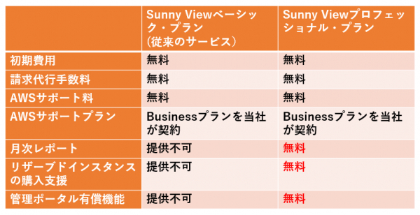 サニークラウドでは2013年よりAWS請求代行サービスを提供してまいりました。これまでに多くの皆様に管理ポータルサイトである「Sunny View」をご利用いただいておりますが、契約中のお客様から「料金の詳細な分析がしたい」、「運用を自動化したい」とのご要望をいただいていたことから、「Sunny Viewプロフェッショナル・プラン」の提供を開始することにいたしました。