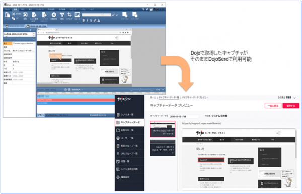 今回のバーションアップでは、「Dojo ver.8.1」と「Dojo Sero ver.2.0」間でのデータ連携が可能となり、Dojo Sero のキャプチャ連携機能が強化されました。