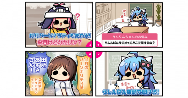 また、森キノコ先生(https://twitter.com/morikinoko8888)が描く、らしんばんWebサイトで好評連載中のWebコミック「ゆるコミ」(https://www.lashinbang.com/webcomic/)第149話では、田所さんのらしんばんラジオパーソナリティ就任を記念したネタで4コマ漫画を執筆していただいた。