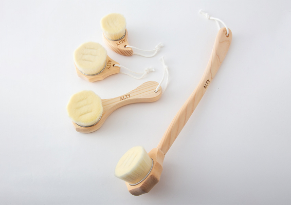 職人が匠の手法で磨き上げた限りなくやわらかな素肌に優しいALTY美容ブラシ。「ablution:清めるために手や身体を洗うこと」から名付けられました。 抗菌作用のある裏木曾東濃ヒノキを持ち手に使用し、職人により磨き上げられるうっとりするような極細毛が、肌のミクロのキメの中の汚れまでを優しくきれいに洗い上げてくれます。