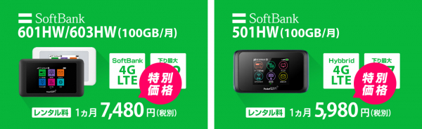 キャンペーン期間中に対象2機種「601HW(100GB/月)(※)」または「501HW(100GB/月)(※)」の「マンスリープラン 月またぎ1カ月」を、それぞれ特別価格にて提供いたします。