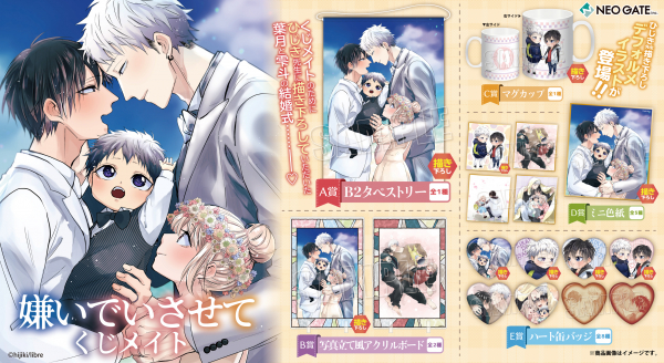 アニメイト通販の「くじメイト」に、大人気オメガバースBL作品『嫌いでいさせて』のオンラインくじが登場です。