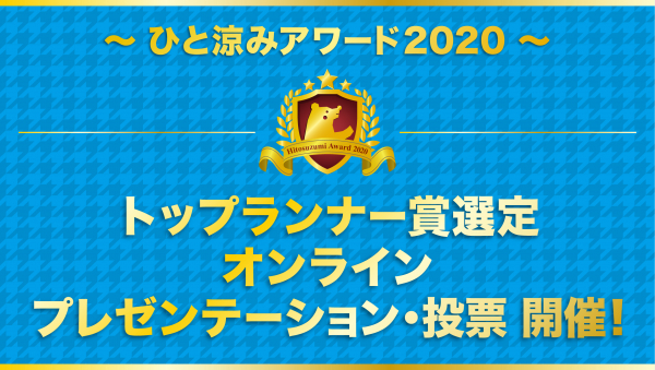 来たる2020年11月27日(金)、「ひと涼みアワード2020 トップランナー賞選定オンラインプレゼンテーション・投票」を開催いたします。