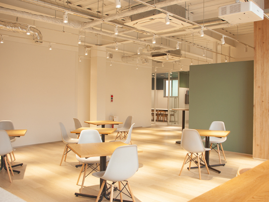 ・150インチプロジェクターを備えたフリースペースでのセミナーや勉強会の開催