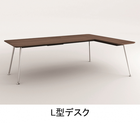 スチールパイプにクロムメッキ仕上げのデスク脚は放射状に広がるシンプルなデザインで洗練された印象。ハイグレードタイプの天板は、リアルな木目の表情に近い?同調エンボス加工”を施した高級メラミン仕様を採用しています。