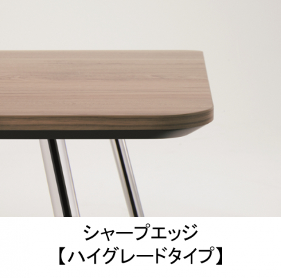 「ハイグレードタイプ」は、木目柄に合わせて凹凸をつける、?同調エンボス加工”のメラミン天板を使用。見た目・手触りともに、より天然木に近い表情を醸し出す、エグゼクティブルームにふさわしい高級感あふれる仕様です。カラーはライトエルム、ダークエルムの2色。また、テーブル天板のエッジを斜めにカットした?シャープエッジ”が天板を薄く見せ、洗練された印象に仕上げました。