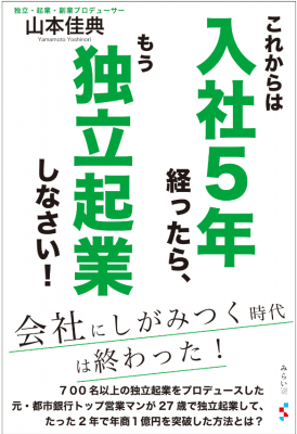 みらいパブリッシング(所在地:東京都杉並区高円寺、代表取締役:松崎義行)は『これからは入社5年経ったら、もう独立起業しなさい! ~会社にしがみつく時代は終わった!~』 を2020年11月17日に刊行します。 著者:山本佳典(やまもと よしのり) 四六判 200ページ 本体 1500円+税 ISBN:978-4-434-28198-3 書籍詳細:https://www.amazon.co.jp/dp/4434281984