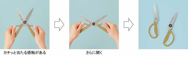 独自の“あんしん分解設計”を採用。一定の角度までグリップを開くとカチッという感触があり、さらに開くと左右の刃が取り外せる段階式の設計になっているので、開きすぎて不意に刃が外れる心配がなく、安全に持ち歩くことができます。分解できるので、屋外でも隅々まで洗えて安心です。