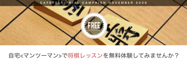 世界中の講師と生徒をつなぐオンライン習い事サイト「カフェトーク(http://cafetalk.com/)」を運営する株式会社スモールブリッジ(本社:東京都渋谷区、代表取締役:橋爪小太郎)は、2020年11月9日、カフェトークの将棋カテゴリーのレッスンを最大3回無料で試せる受講モニター募集を開始しました。