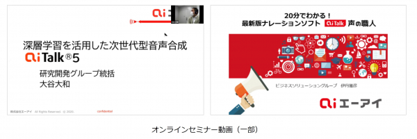 高品質音声合成AITalk(R)を開発・提供する株式会社エーアイ(本社:東京都文京区、代表取締役社長:吉田大介、証券コード:4388、以下:エーアイ)は、過去に開催したオンラインセミナー動画のオンデマンド配信を2020年11月10日より開始したことをお知らせいたします。