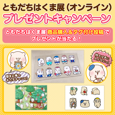 『ともだちはくま展(オンライン)』では、各地で開催された『ともだちはくま展』にて展示された漫画・イラストはもちろん、オンライン限定のお楽しみコンテンツが満載。さいきたむむが初めて語るイラスト制作秘話やグッズができるまでの工程などを初公開します。