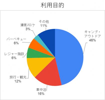 このことからレンタル利用者はキャンピングカーの利点である「車中泊」を利用する一方、宿泊場所については、旅行先で宿泊場所を決めるという利用者も一定数いる事が分かりました。