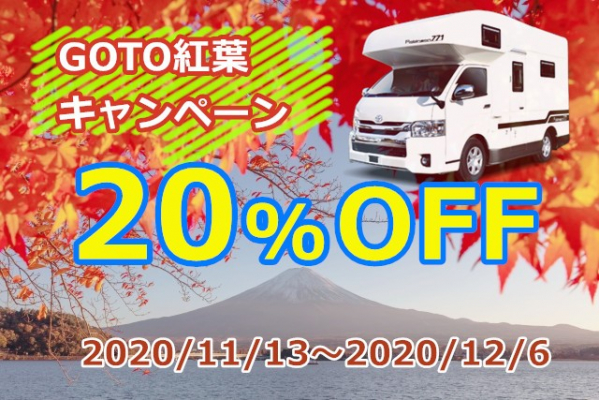 日本最大級のキャンピングカーのレンタル事業「ジャパンキャンピングカーレンタルセンター(以下 JAPAN C.R.C.)https://japan-crc.com/」を運営するキャンピングカー株式会社(本社:東京都千代田区、代表取締役社長:頼定 誠)は、2020年11/13(金)~2019年12/6(日)までのレンタル利用を対象に、レンタル料金が20%割引になるキャンペーンを実施致します。