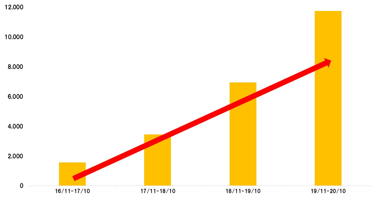 ■年間マッチング件数の推移(2016年11月~2020年10月)