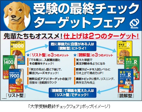 「大学受験最終チェックフェア」では、大学入試本番を控えた今の時期にお薦めの英単語学習法を、書店で掲示するポップや英単語集のオビでお知らせいたします。