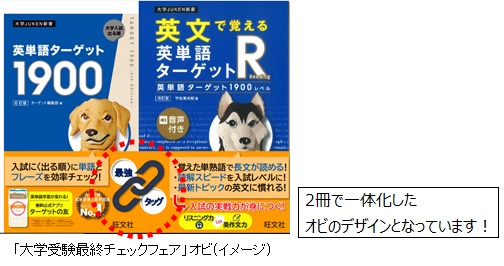 「大学受験最終チェックフェア」は、書店売上No.1(※1)の大学受験用英単語集『英単語ターゲット1900』をはじめとした「英単語ターゲット」シリーズと「英単語ターゲットR」シリーズを活用し、大学受験生の皆さんを応援するものです。