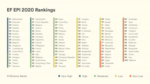 なお、EF EPI 英語能力指数2020 年版のランキングは以下のサイトでご覧いただけます。http://www.efjapan.co.jp/epi/