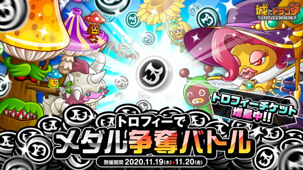 株式会社アソビズム(本社:東京都千代田区、代表取締役:大手智之)は、App Store・Google Playにて好評配信中の『城とドラゴン』で「トロフィーでメダル争奪バトル」を2020年11月19日(木)より開催いたします。