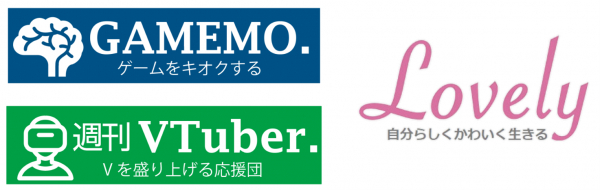 左上からGAMEMO(ガメモ)、週刊VTuber、ラブリー(子会社Dolphin運営)