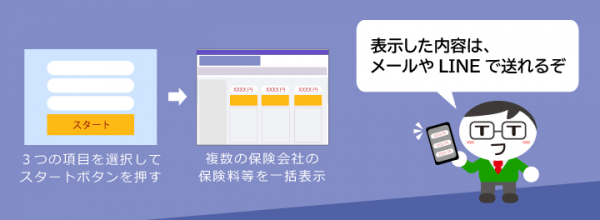 メールまたはLINEで送信された内容に保険料が記載されておりますので、サイトに改めてアクセスする必要はなくなり、いつでも試算結果の確認ができます。※2