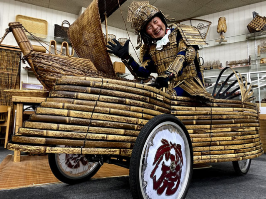 今回の講演では昨年スペインのビトリアでのボックスカートレースに参加した際に作った虎竹アーマーでお伺いします。エコな竹資源としての有用性を多くの方に知ってもらいたいと考える竹虎の想いと繋がる部分も多く、参加したレースです。