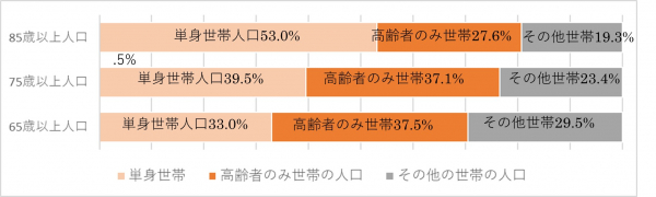 世田谷区高齢福祉部高齢福祉課によれば、2020年4月時点での65歳以上が約184,700人。そして2025年には約195,000人に増加すると予測しています。また、高齢者の世帯状況は、一人暮らしの高齢者が33.0%、高齢者のみの世帯が37.5%を占め合計で70%超が高齢者のみの世帯となっています。