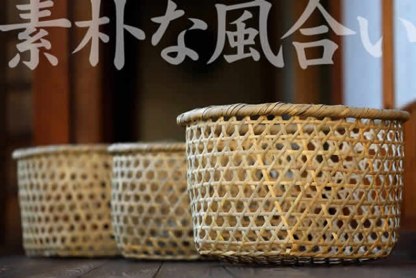 篠竹ラウンドバスケットは、篠竹を六ツ目編みで編み上げた竹かご。篠竹の落ち着いた風合いは和洋問わずどんなインテリアにもマッチします。
