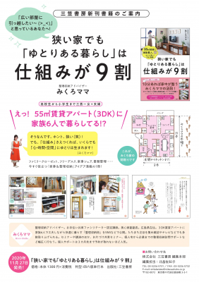 新刊書籍『狭い家でも「ゆとりある暮らし」は仕組みが9割』(著者:みくろママ)を11月27日(金)に発売いたします。