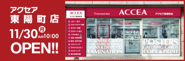 オンデマンド印刷業を展開する株式会社アクセア(本社:東京都千代田区、代表取締役社長:吉田忠司、以下アクセア)は株式会社ルクールプラス(本社:東京都千代田区)のフランチャイズ加盟店として、『アクセア東陽町店』を2020年11月30日(月)にオープンいたします。