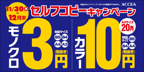 セルフコピーを12月末まで通常よりお得にご提供いたします。