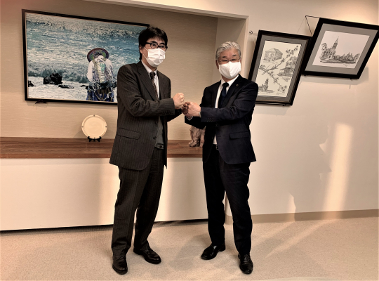 土佐清水市役所にて 左:当社代表取締役社長 高橋洋、右:土佐清水市 泥谷光信市長
