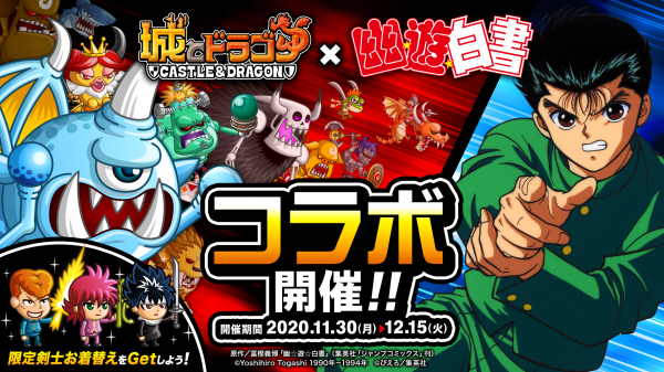 株式会社アソビズム(本社:東京都千代田区、代表取締役:大手智之)は、App Store・Google Playにて配信中の『城とドラゴン』(以下、『城ドラ』)で、2020年11月30日(月)よりTVアニメ『幽☆遊☆白書』(以下、『幽☆遊☆白書』)とのコラボイベントを開催いたします。