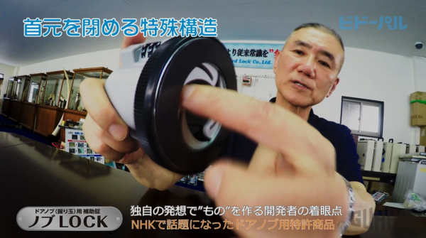 そこで弊社は、もっと多くの方に製品の魅力を伝える方法として、オリジナル動画の共同制作と動画の一般公開を提案し、この度ハイビジョンでの動画制作をさせていただくこととなりました。シリーズ第一弾動画として、ガードロック製品の中でもNHKニュースで話題となった「ノブLOCK」の解説動画を公開いたします。