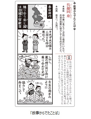 中学1年生の国語教科書には「故事成語」の単元があり、調べ学習の対象となることも多いことから、4コマ漫画でわかりやすく解説した「故事からでたことば」を新設しました。
