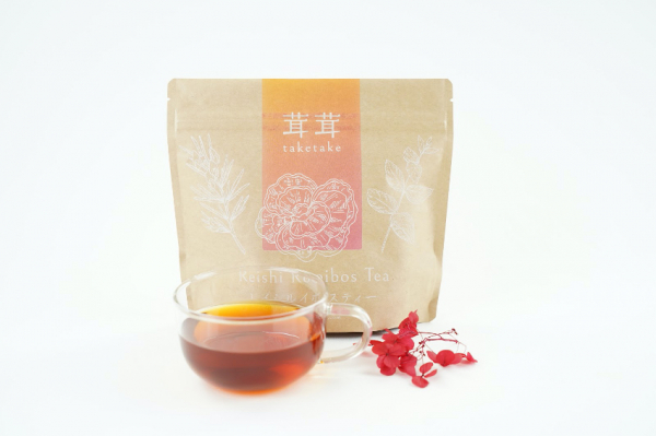 「茸茸(タケタケ) レイシルイボスティー」は、中国で古くから健康に役立つものとされてきた霊芝(レイシ)と、美容・健康意識の高い方に人気のルイボスをブレンドしたお茶です。ほんのり香るミントがアクセントになり、飲みやすく作られています。