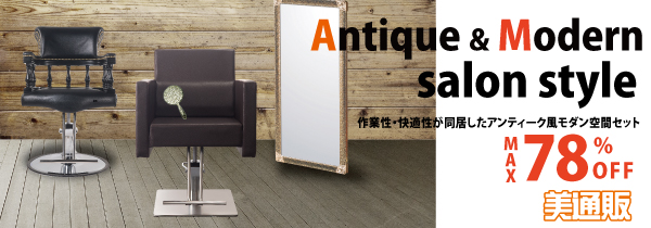 プロ向け美容材料の通信販売サイト「美通販」(https://www.bitsuhan.com)では、クラシカルな雰囲気で魅力的な空間を実現できる機材のセット「作業性・快適性が同居したアンティーク風モダン空間セット」キャンペーンを開催中です。商品は最大78%OFFでお買い求めいただけます。