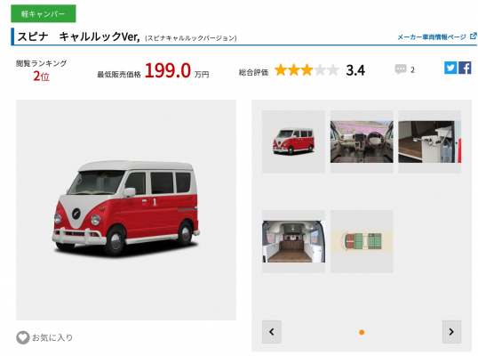 2位にランクインした「スピナ キャルルックVer,」は、バスコンから軽キャンまで多様な車両製作・販売を手がける「ナッツRV」の軽キャンモデル。