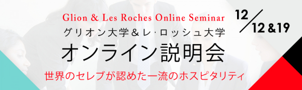 スイス式ホスピタリティ教育を世界4か国で提供するソメット・エデュケーションの日本事務局(所在地:東京都渋谷区、以下グリオン/レ・ロッシュ日本事務局、運営:iaeグローバルジャパン株式会社)は、2020年12月12日(土)、19日(土)にホスピタリティ/ホテル大学へ進学を希望する学生、社会人、保護者の方を対象に「ホスピタリティ/ホテル大学留学説明会」をオンラインで開催する。